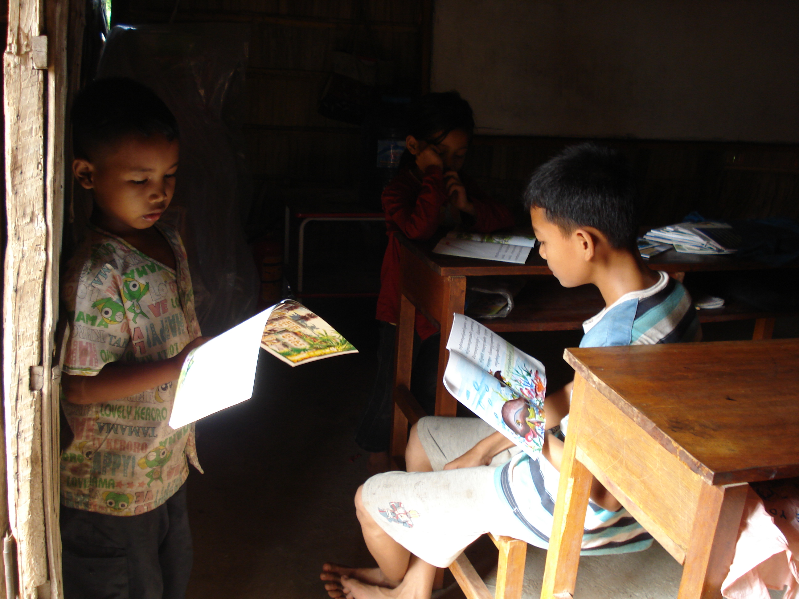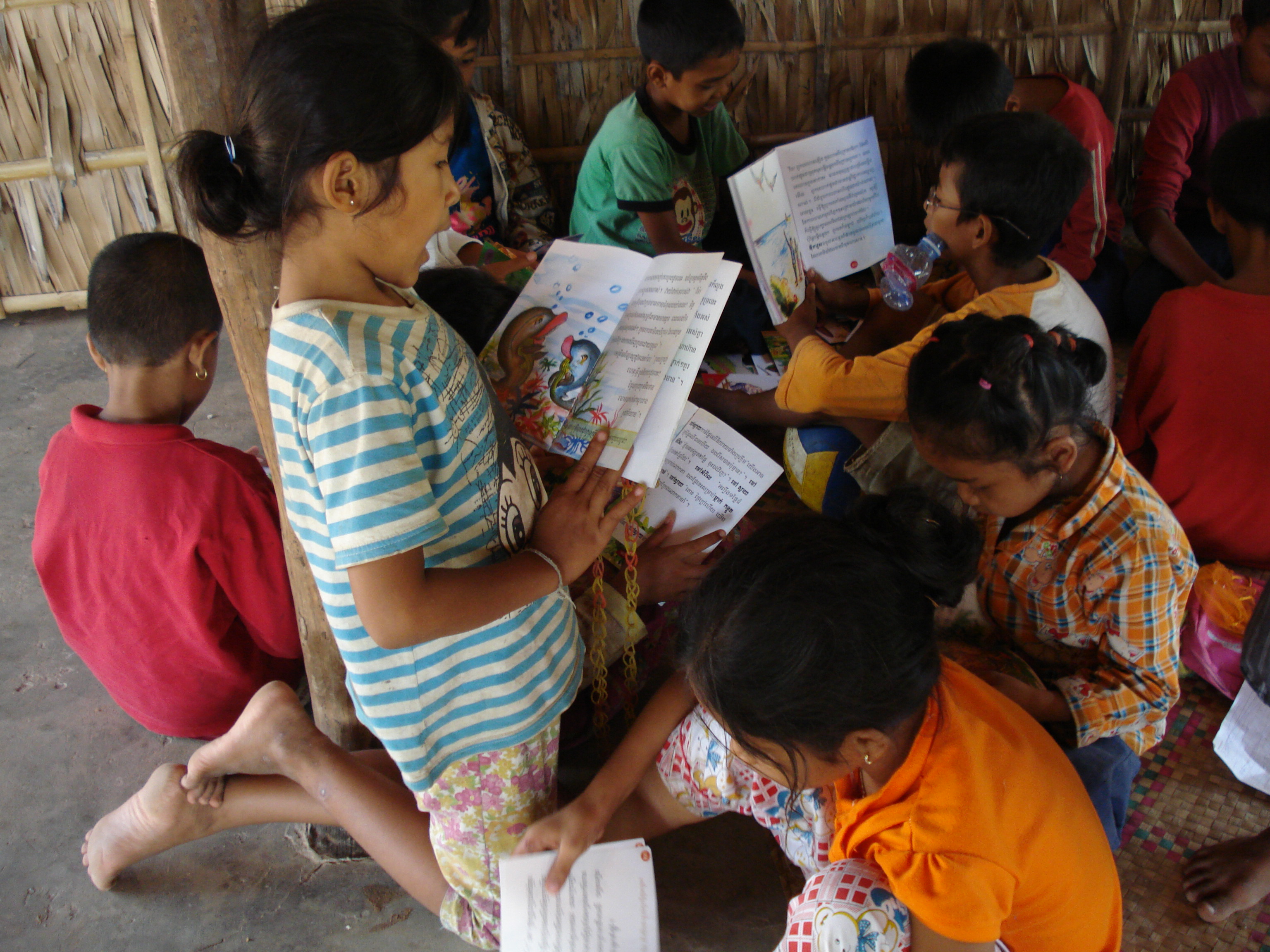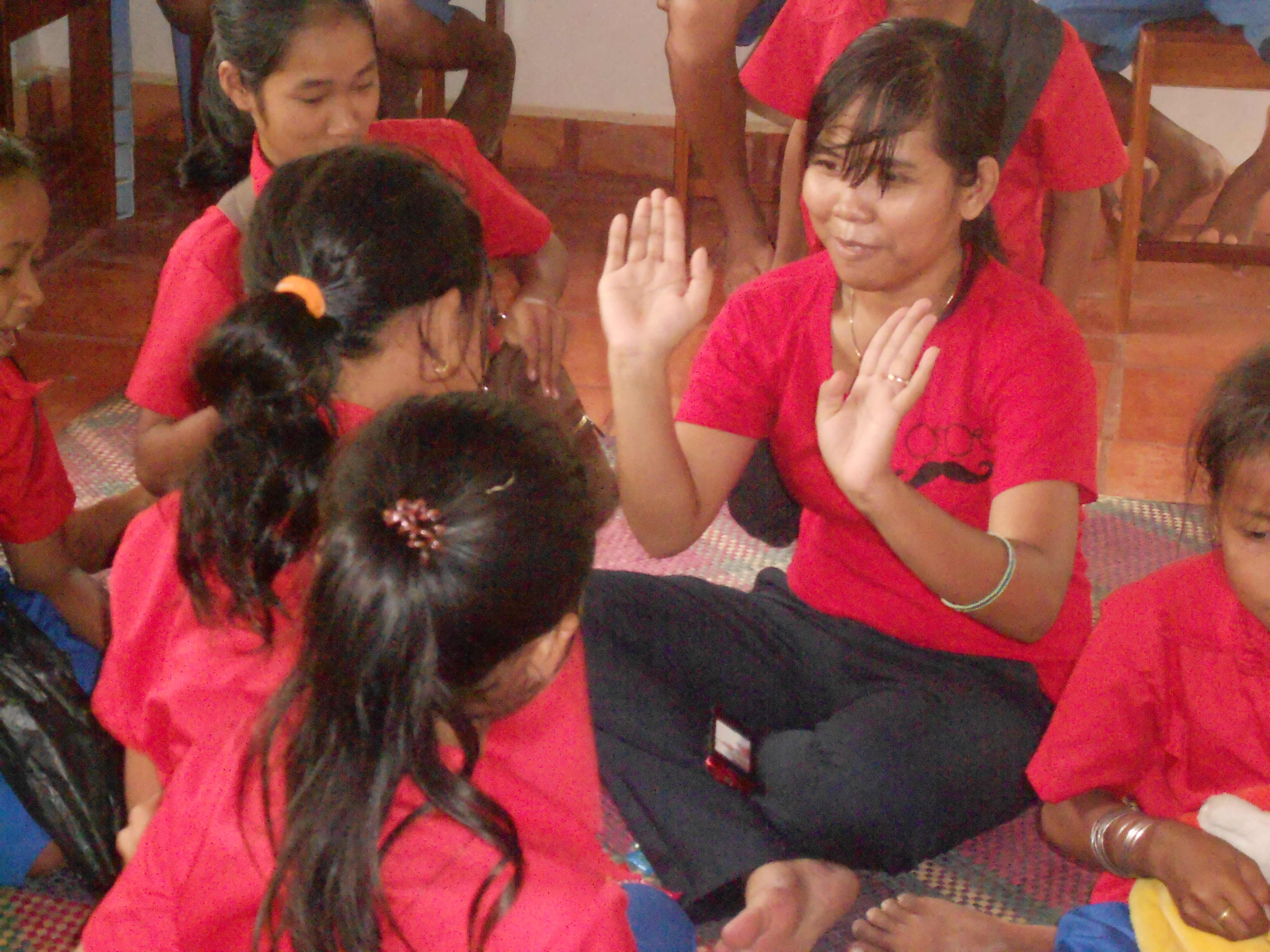 Head Teacher Savorn demonstrates a point to her students.
