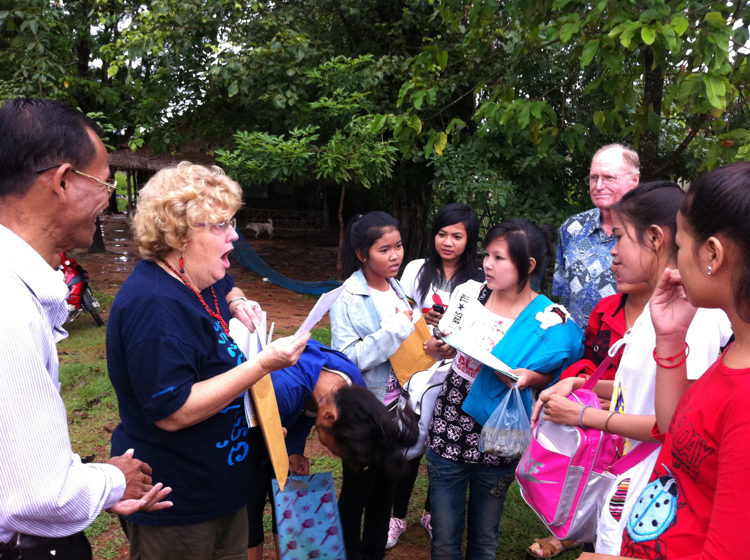 Wet season bus excursion for students to the Metta Karuna Centre in Siem Reap, Cambodia. Students are following the floral maze.