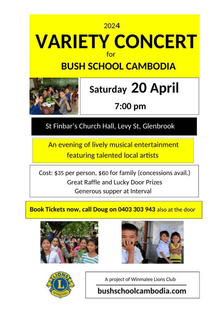 See Bush School Cambodia on Facebook, also: Please share concert flyer below.